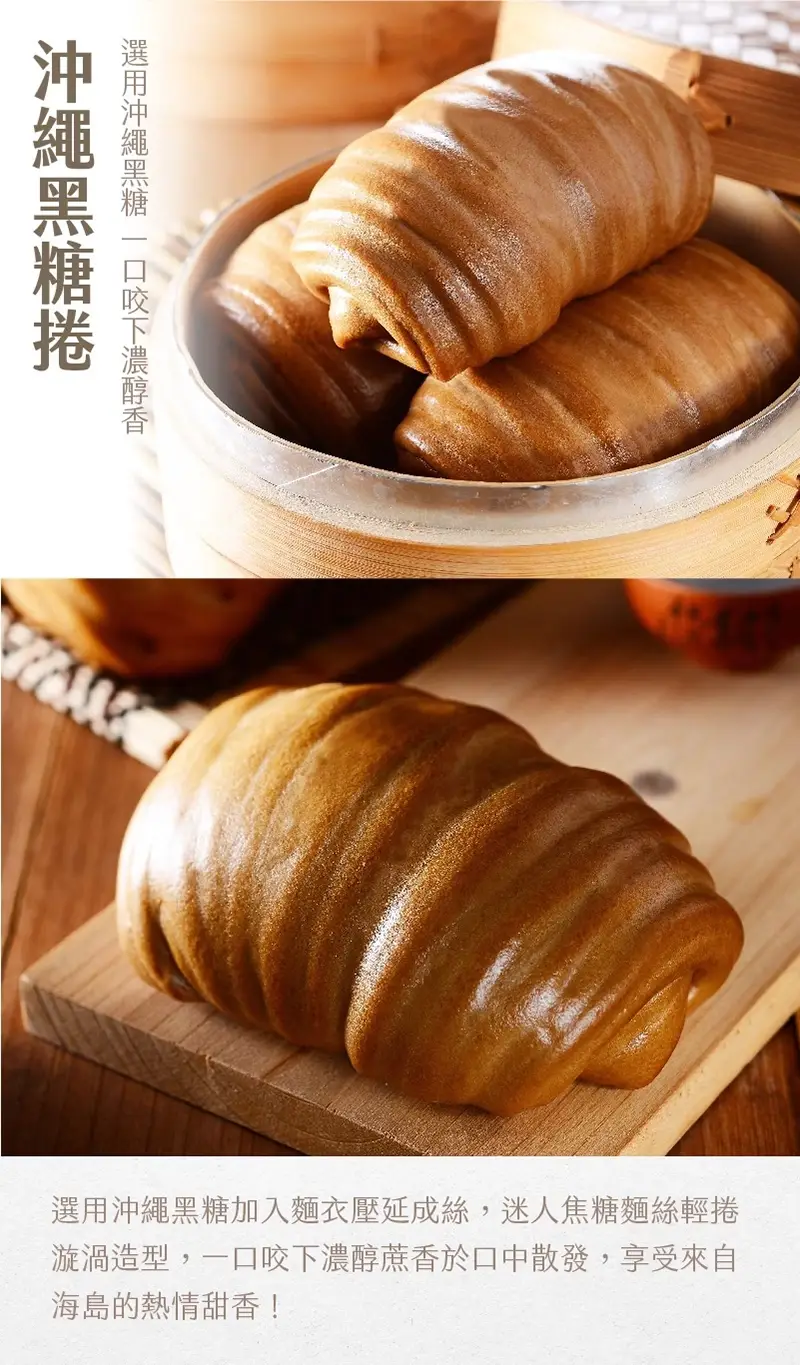 選用沖繩黑糖製作麵衣,精心壓製成絲,迷人的焦糖香氣在口中四溢。 漩渦造型,一口咬下,濃郁的蔗香在嘴裡散發,讓你感受到來自海島的甜蜜熱情!