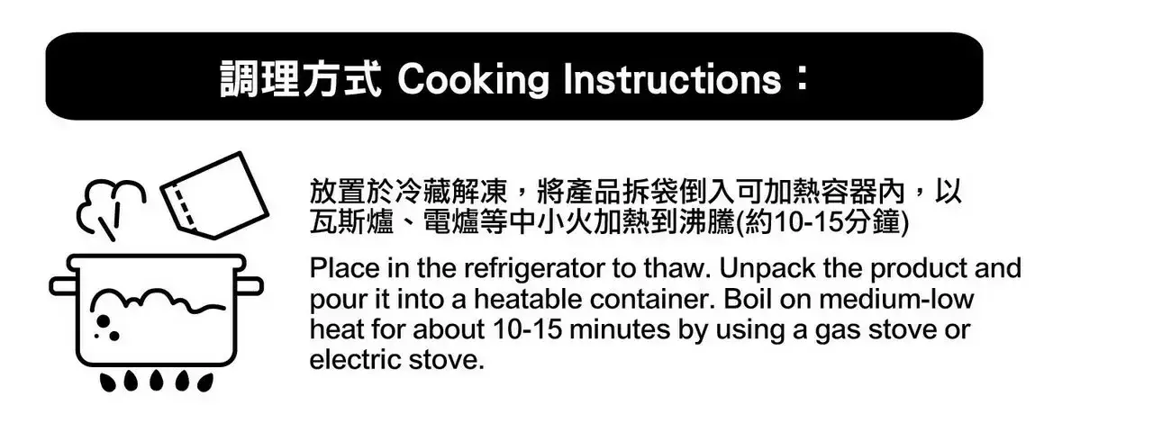 注意事項:加熱調理可能會依設備不同需自行調整溫度與時間,請依實際為主。